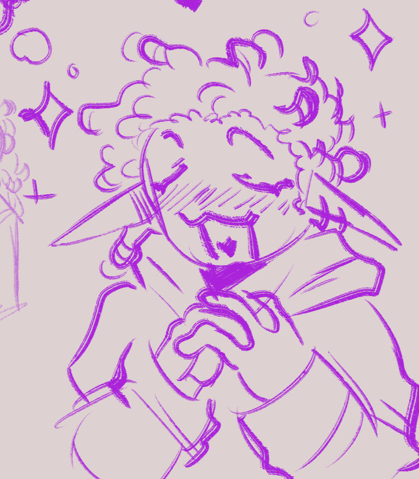 A page filled with messy sketches of your character. Each sketchpage will start with: 2 headshots, 1 full, and 1 chibi!